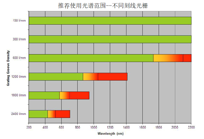 在相同测试条件下(狭缝不变),提升光谱分辨率的方法通常有两个:一是延长光谱仪的焦距,同等情况下,光谱仪的焦距越长,分辨率越高! 但这样就意味着光谱仪的尺寸变得越来越大,光路调校变得越来越困难! 另一个有效途径是利用高刻画线的衍射光栅,,比如同等情况下,2400g/mm 的光栅分辨率相比1200g/mm 的光栅可以提升大约1倍; 但同样由于刻画光栅衍射角度的关系,高刻线光栅的波长使用范围也同样会急剧缩小,比如,1200g/mm 的光栅*大波长使用范围到1200nm, 而2400g/mm 的光栅*大波长使用范围则只能到600nm, 也就是说通常高刻线光栅都只适用于紫外波长范围的高分辨率光谱测试, 对于可见光(VIS)以及延伸的红外 NIR 波段,要想获得高分辨率的光谱,提高光谱仪的焦距几乎变成了可行的一种方案!
