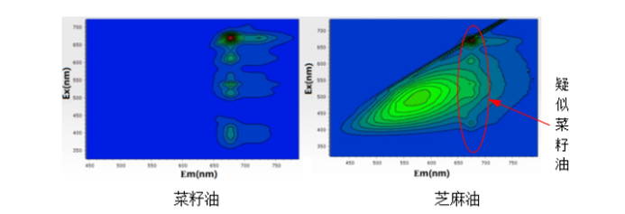 目前国内外检测食用油品质的方法主要有色谱法和光谱法等。色谱法费时、成本较高,光谱法选择性低。三维荧光光谱能较好地反映激发波长和发射波长同时变化时的荧光强度信息,其强度等高线具有指纹性。现有研究证明通过指纹的形状、走向、主峰位置、特征峰强度等具体指标,可实现对复杂混合物样品的鉴定。