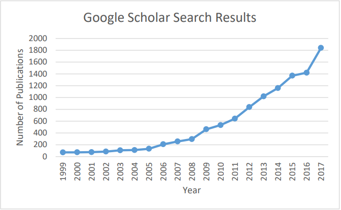 图1:每年提及“氮空位”和“金刚石”的出版物总数(Google Scholar)。
