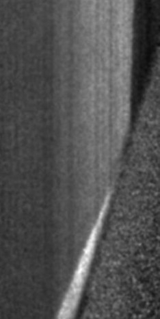 图3激波在斜劈规则反射温度测量结果(75°,激波自左至右)