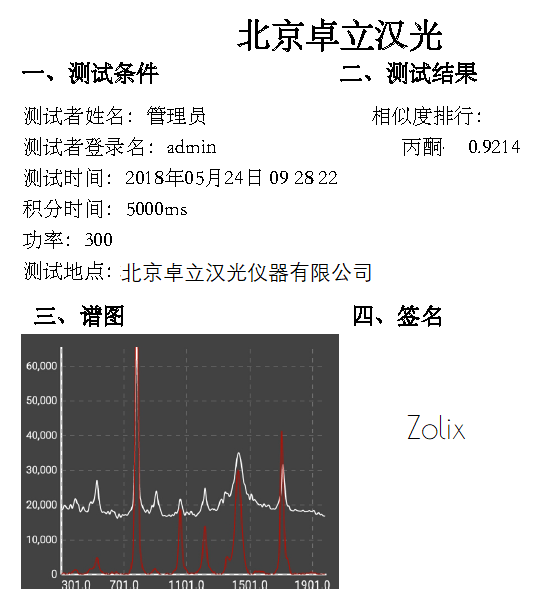 基于手持式拉曼光谱仪具有现场快速识别的优势,本次选择了易制毒-丙酮作为测试物,量取2ml丙酮试剂与透明玻璃瓶中,并置于液体样品池内检测,检测结果如图2所示: