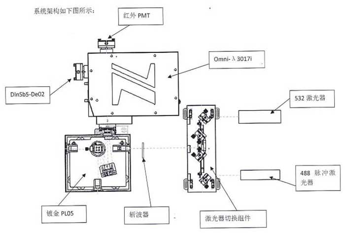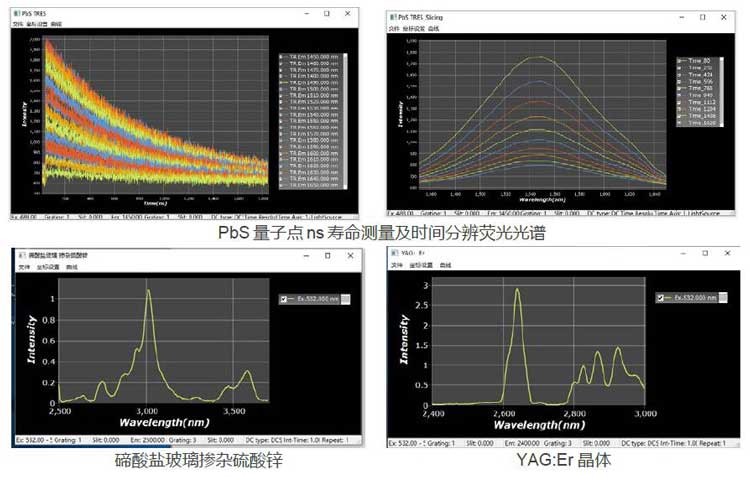 采用快盈lV中红外荧光测试系统,系统组成:980nm激光器、Omni-λ5015i影像校正型红外单色仪、红外镀金反射式样品室、液氮制冷型InSb探测器(光谱响应范围1-5.5um)。