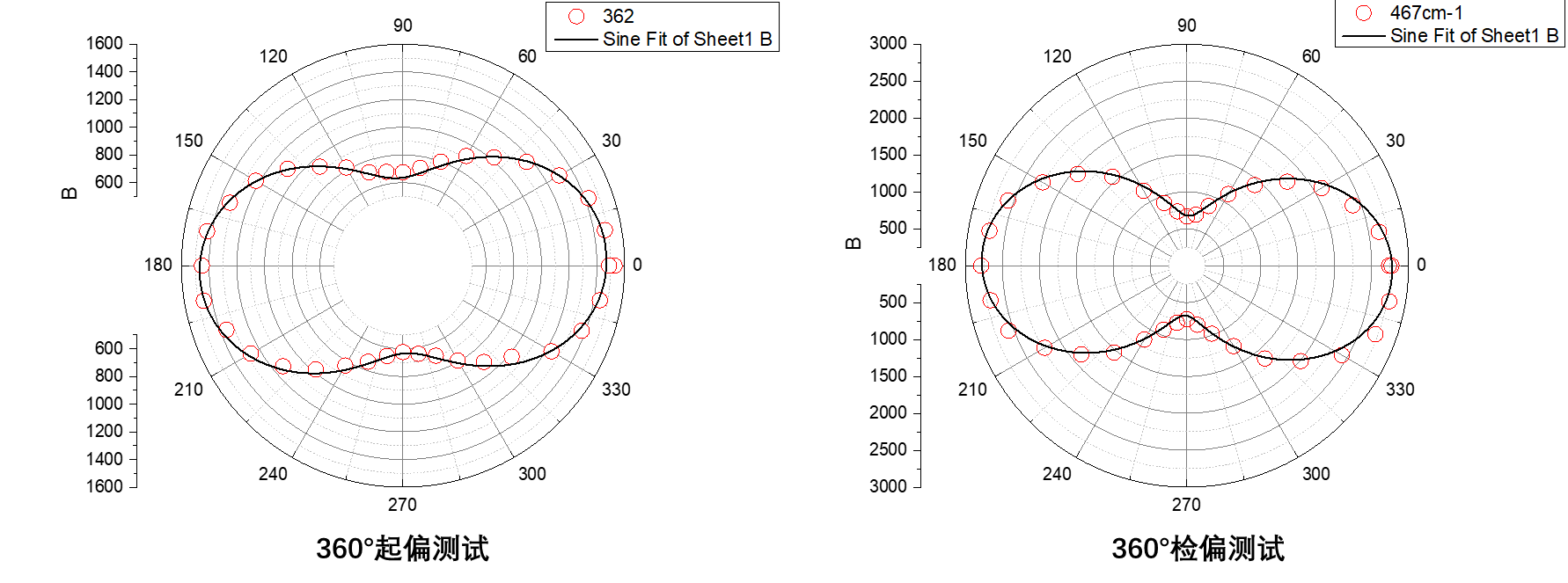 图2 CCl4拉曼峰位360°偏振测试谱图