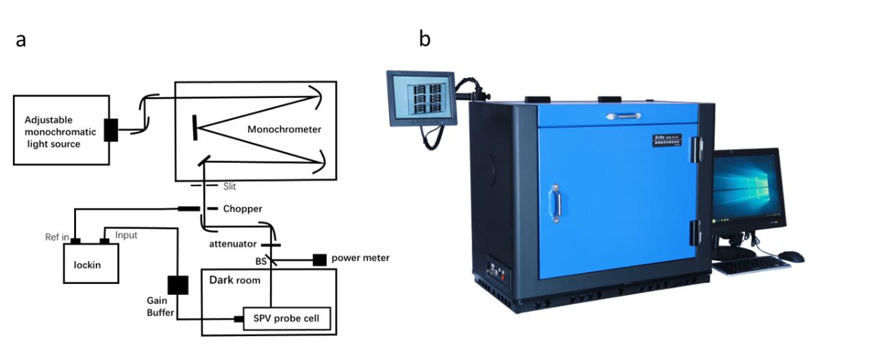 图1表面光电压测试系统: a测试系统示意图; b测试系统实物图