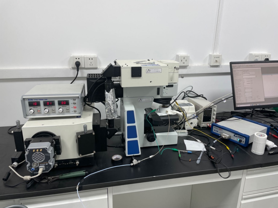 本拉曼系统由快盈lV提供,型号为Zolix RTS-2。该系统是一款可定制化的拉曼系统。系统配备了RX-50M-S正置显微镜模组,为拉曼系统提供共聚焦模式以增强拉曼信号,同时有10X,50X和100X的物镜。激光系统有两路(后期可扩展第三路),包括532 nm和785 nm激光。系统包括各种不同镜片以及包括狭缝、分光计等组成的光路系统。信号的采集和分析采用的是Andor iVac-316-CCD以及快盈lV Omni-λ3008i光谱仪。该系统为高质量光谱信号的采集提供了保障。