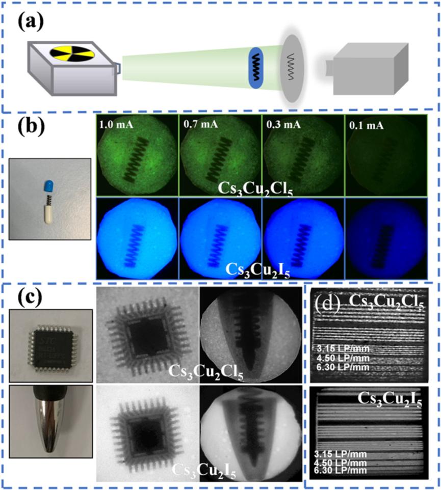 铅基钙钛矿纳米晶体(如CsPbX3)因其低成本、低温合成性和优异的光电性能被视为潜在替代材料。然而,铅的毒性和材料本身的不稳定性限制了其广泛应用。广西大学物理科学与工程技术学院林涛博士团队研究人员探索采用采用无铅的铜(I)卤化物构造新型闪烁体。与纳米晶体相比,单晶铜(I)卤化物单晶在结构缺陷密度低、发光光子散射效应小等方面具有显著优势,这对实现低剂量高分辨率X射线成像至关重要。(https://doi.org/10.1039/d3tc03871h)