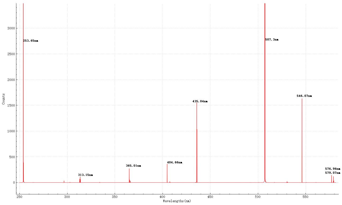 图3 汞灯的扫描拼接光谱