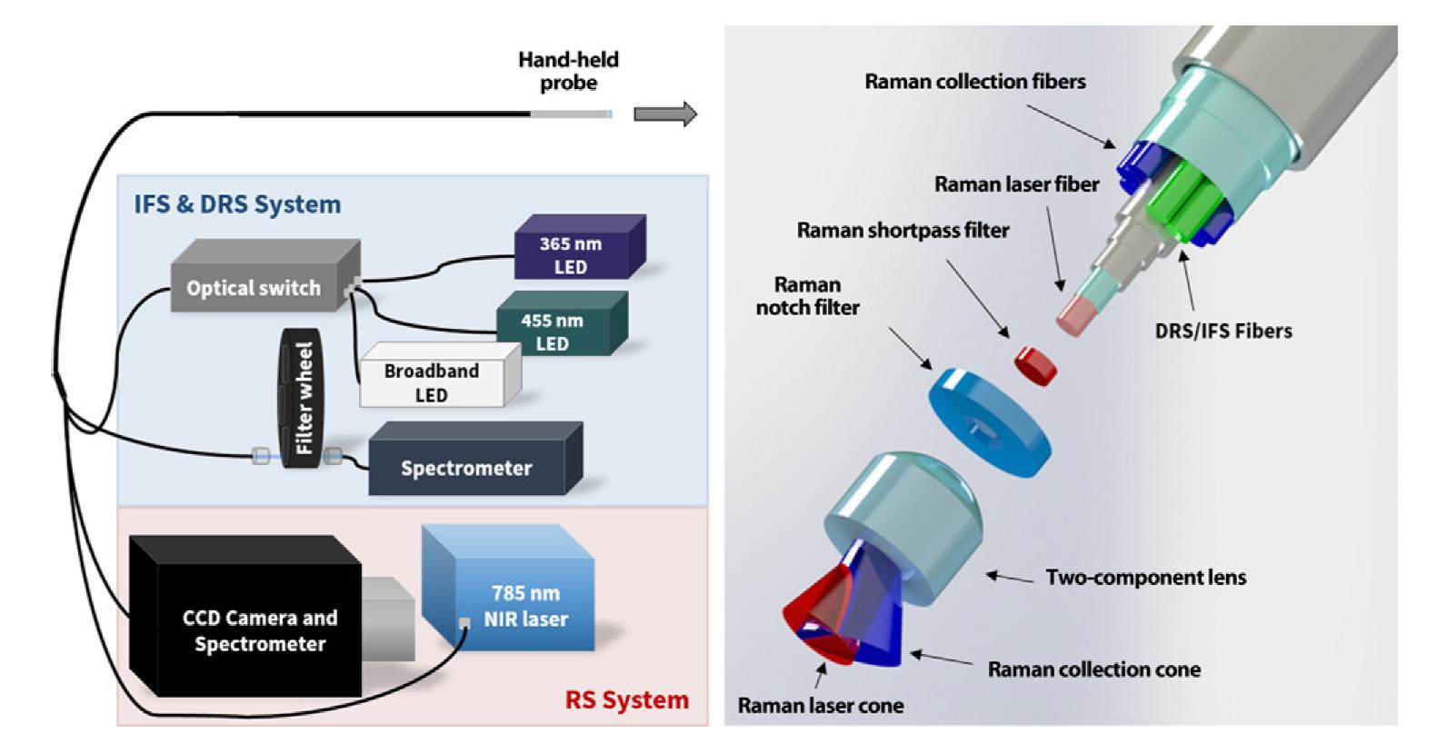 案例3:如果在手术过程中没有检测到所有的癌细胞,手术作为-种癌症治疗的有效性就会降低,从而导致复发,对生存产生负面影响。为了在癌症手术中*大限度地检测癌细胞,研究人员设计了一种术中原位、无标记、光学癌症检测系统,该系统结合了固有荧光光谱、漫反射光谱和拉曼光谱。使用这种多模态光学癌症检测系统,我们发现脑癌、肺癌、结肠癌和皮肤癌可以在手术中原位检测,其准确性、灵敏度和特异性分别为97%、100%和93%。这种高灵敏度的光学分子成像方法可以深刻地影响广泛的外科和无创介入肿瘤学的范围程序,通过提高癌症检测能力,从而减轻癌症负担,提高生存率和质量生活[]。