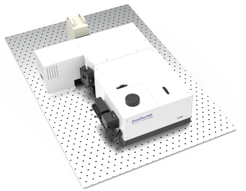 发射单色器:标配三光栅塔轮,可安装多至三块光栅,其中近红外光栅可用于单线态氧近红外发光的分光。自动滤光片轮,用于安装800nm高通滤光片,消除倍频峰信号对单线态氧发光峰的干扰