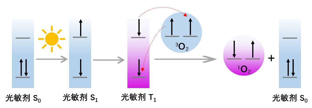 图2. 光敏剂作用下单线态氧产生过程示意图