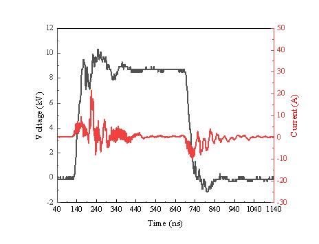 设置高压脉冲电源参数为8kV,2kHz,500ns,大气压空气脉冲DBD放电电流电压图如图4所示,观察到两个放电电流区间,分别是电压脉冲上升沿的正峰和下降沿的负峰。其中,正电流的幅值远高于负电流的幅值,负电流的出现是由于正放电过程中的电荷积累。由于放电回路中存在容性器件,在脉冲的第一个峰值结束后,放电存在多个纳秒级的震荡,持续一段时间后降至零点附近。发射光谱如图5所示,由N2(C3Πu-B3Σg)、N2+(B2Σu-X2Σg)和N2(B3Σg-A3Σu+)构成。整个波长范围内,光谱强度*高的谱线为337.1nm,氮气的第二正带系的谱线*清晰且光谱强度*高,这是由于氮气亚稳态基团退激发产生的。图6展示了一个脉冲周期内IsCMOS图像变化。