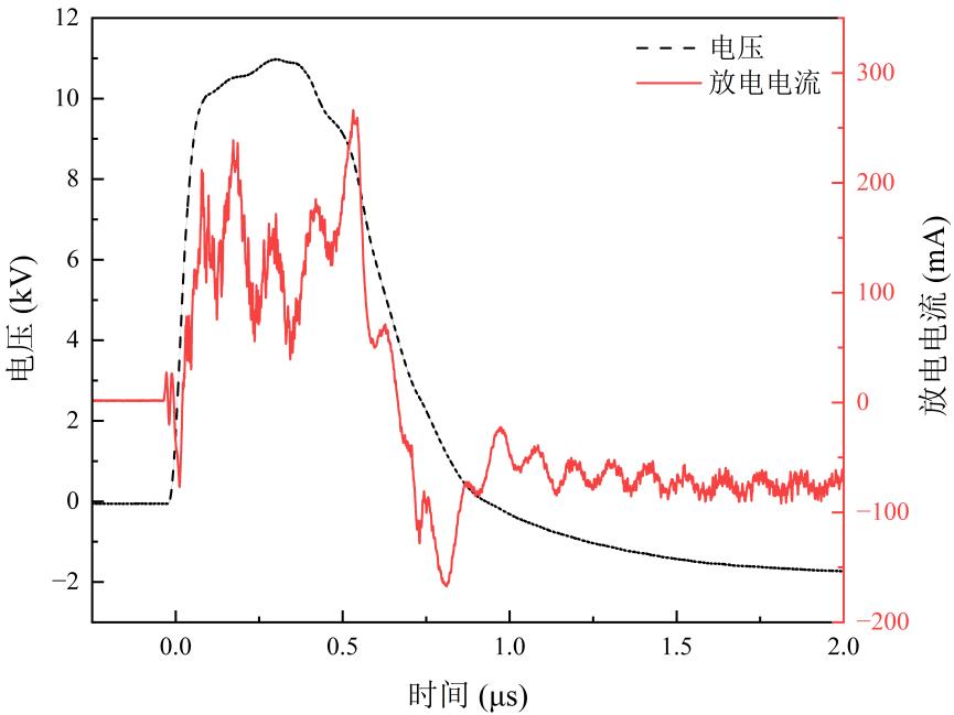 同时,实验过程中采集了Ar等离子体射流放电电压电流波形,如图4所示。其中,放电电流为总电流减去位移电流。从图中可以发现Ar等离子体射流在一个脉冲周期内存在两次放电,分别发生在上升沿和下降沿,且上升沿的放电持续时间较长。