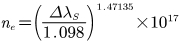 在计算得到高斯线宽的基础上,对实验测量得到的Hα谱线进行反卷积,得到洛伦兹展宽,减去范德瓦尔斯展宽后即得到斯塔克展宽。利用式(5)可得到等离子体电子密度[8-9]:
