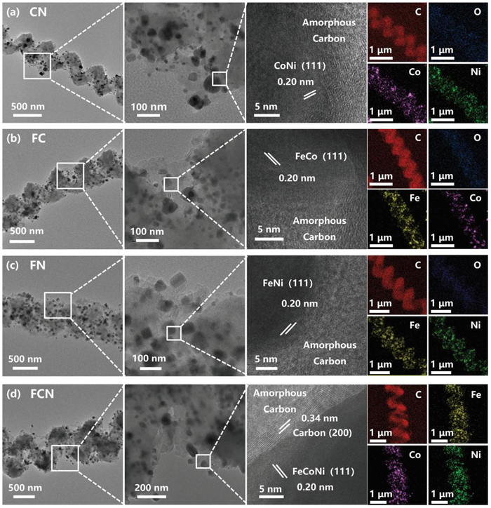 图三: CN, FC, FN, FCN复合材料的TEM图像。