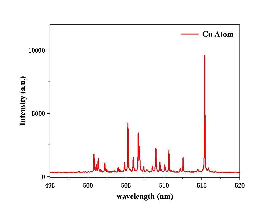 Cu原子在delay:200ns,width:5us下的发射谱线: