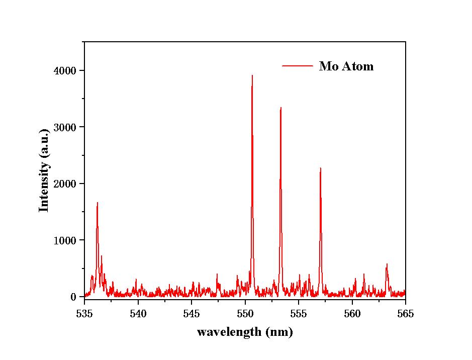 Mo原子在delay:250ns,width:5us下的发射谱线: