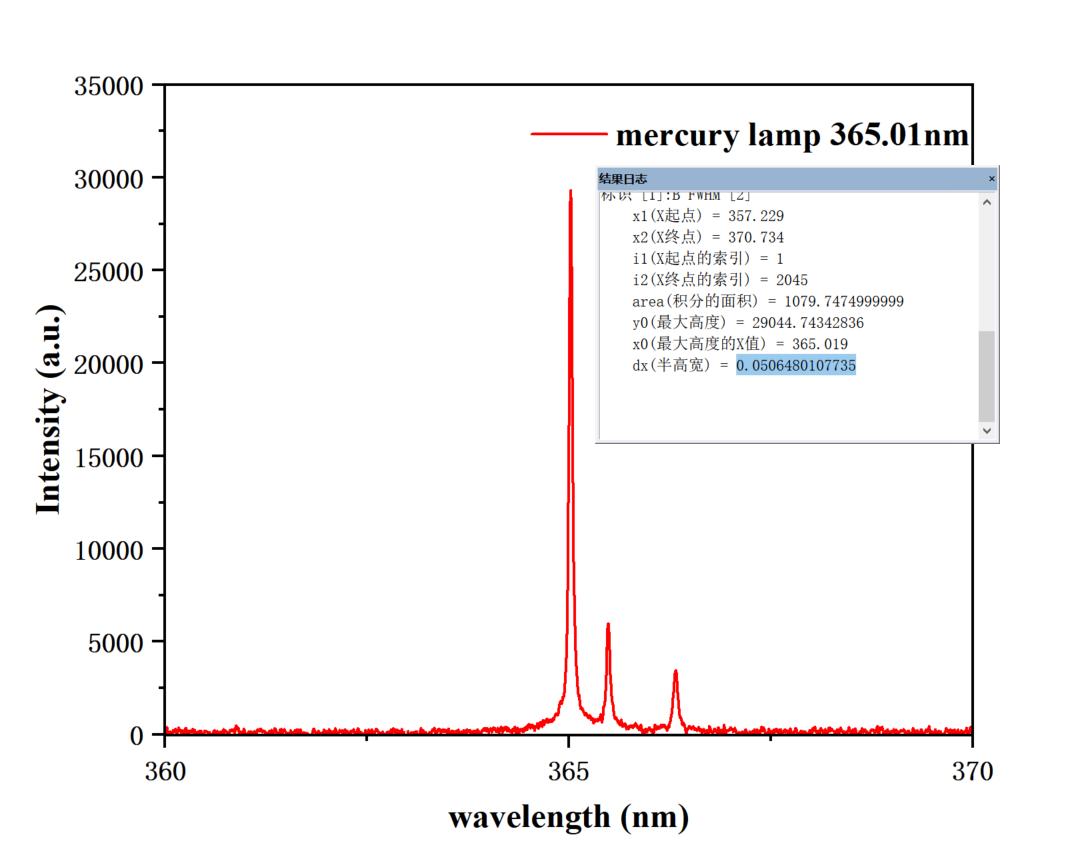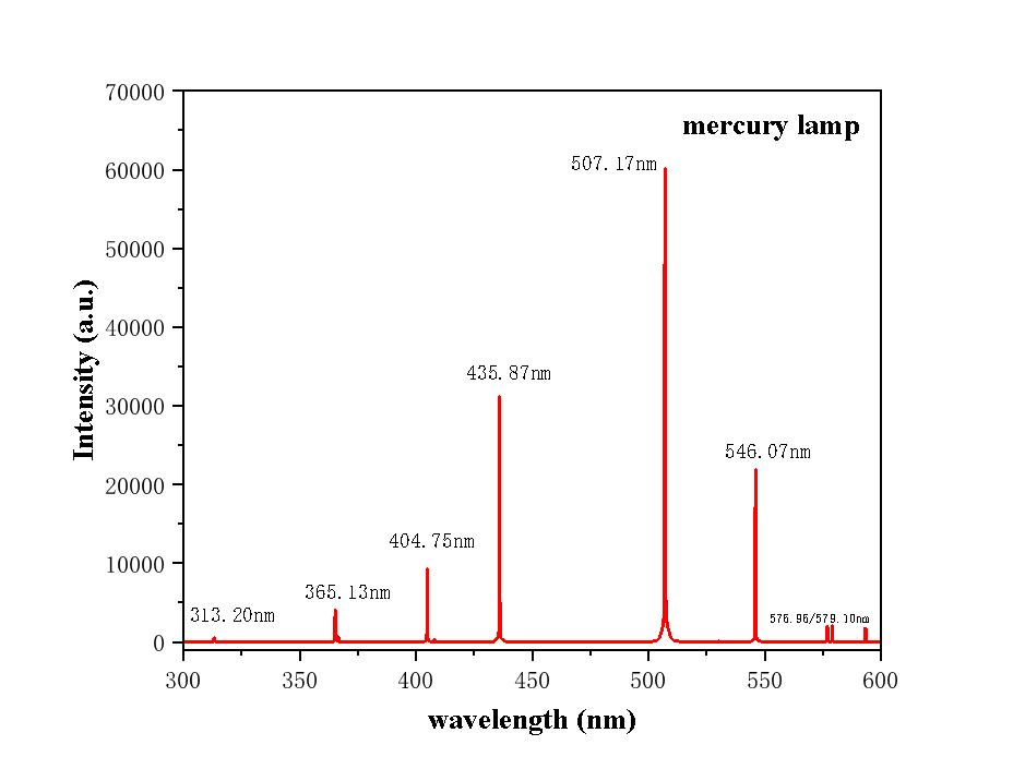 下图为IsCMOS配合卓立全新推出的Omni-λ300S光谱仪,在保证紫外高通光量的前提下,在@2400g/nm光栅时测试分辨率可达0.05nm。此外软件上优化了校正算法,多峰谱线波长校准,校准后汞灯各峰值精准度<±0.2nm @1200g/nm。