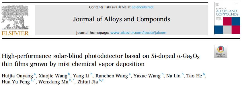 分享一篇来自山东大学冯华钰老师的新研究成果,本文以“High-performance solar-blind photodetector based on Si-doped α-Ga2O3 thin films grown by mist chemical vapor deposition”为题发表于期刊Journal of Alloys and Compounds,原文链接:https://doi.org/10.1016/j.jallcom.2024.175593 希望能对您的科学研究或工业生产带来一些灵感和启发。