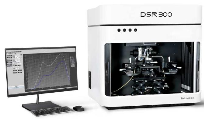 图4以及本研究中的光谱响应度信号数据使用快盈lV公司的DSR300微纳器件光谱响应度测试系统测试得到。其功能全面,提供多种重要参数测试。系统集成高精度光谱扫描,光电流扫描以及光响应速率测试。40μm探测光斑,实现百微米级探测器的绝对光谱祥响应度测量,能满足不同探测器测试功能的要求,是微纳器件研究的优选。