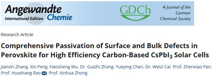 用户速递丨华南农业大学饶华商&钟新华团队:?综合钝化策略提高碳基无机钙钛矿太阳电池