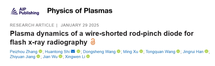 近日,西安交通大学电气工程学院Z箍缩及应用研究中心团队在金属丝短接的低阻抗杆箍缩二极管等离子体动力学诊断方面取得进展,研究成果以“Plasma dynamics of a wire-shorted rod-pinch diode for flash x-ray radiography”为题发表在国际期刊Physics of Plasmas上。西安交通大学电工材料电气绝缘全国重点实验室为该论文第一单位,张沛洲博士研究生为第一作者,石桓通副教授为通讯作者。今天小卓为大家分享该研究成果,希望对您在等离子体诊断相关研究或工业应用方面带来一些灵感和启发。