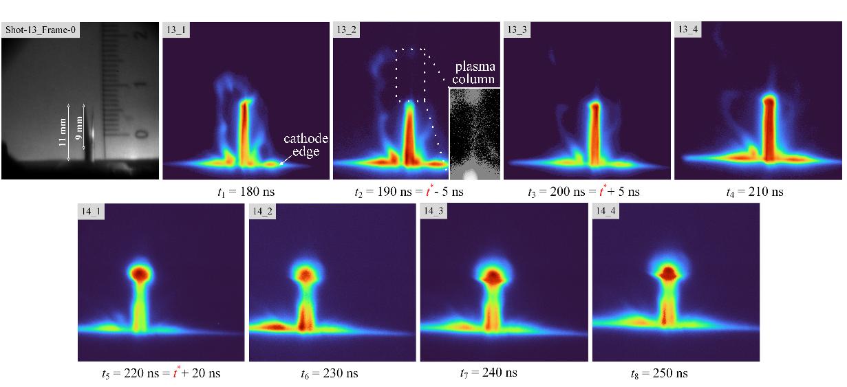 文中两次独立发射的等离子体可见光波段ICCD成像(图3所示)的测试采用快盈lVFC系列分幅相机4X FramingCamera 进行测量。
