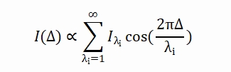 若入射光是波长为λi和亮度为Iλi的多色入射源,则其干涉图强度为: