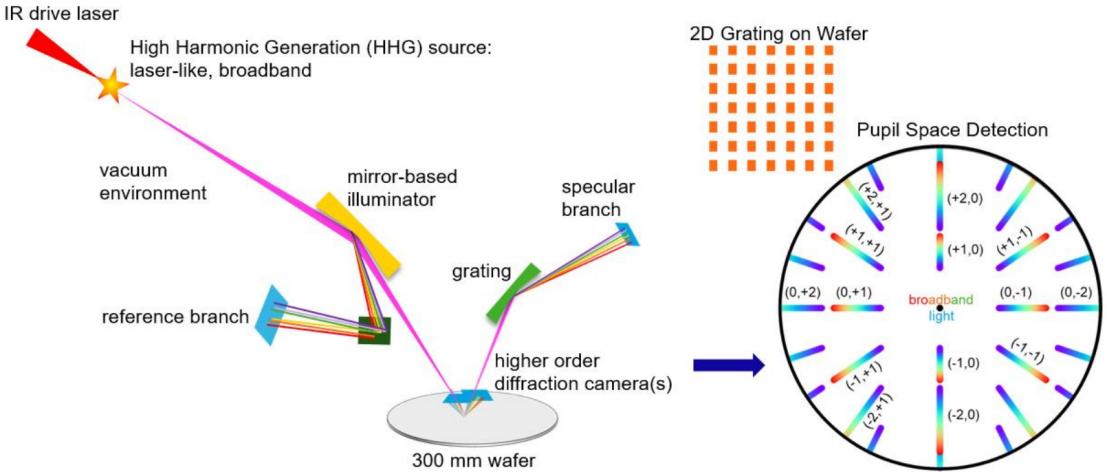 图2、用于晶圆检测的极紫外/软X射线散射测量工具概念和远场检测示意图。