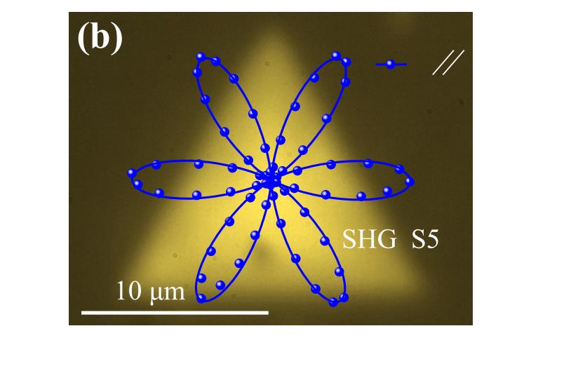 二次谐波(SHG)测量是在与TRS测量相同的装置中获得的,其中使用785纳米激光作为基本激发光,并使用CCD光谱仪记录二次谐波的光谱。通过步进电机控制的偏振器和半波片来控制激发激光和生成输出的偏振。如图1所示为实验数据。