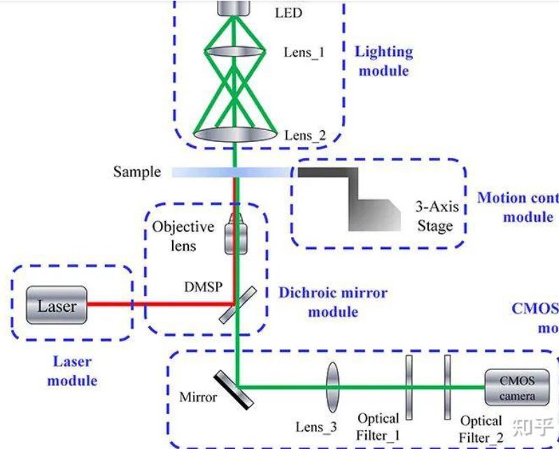 (1)二向色镜:分离捕获激光与成像光(如反射 1064 nm 捕获光,透射 488 nm 荧光成像光)