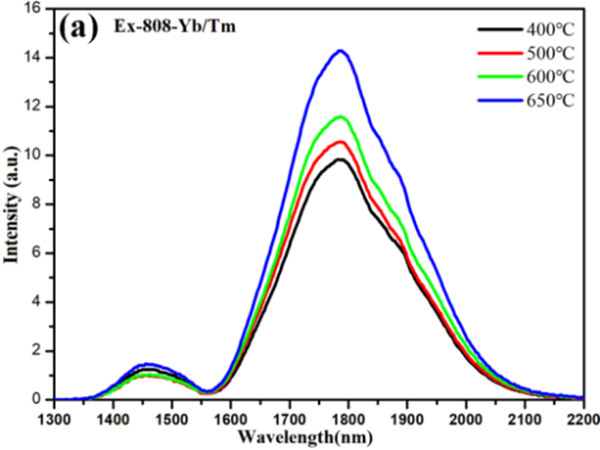 (a) x =0.6的样品在不同温度热处理3h后在808nm激光激发下的近中红外发光,