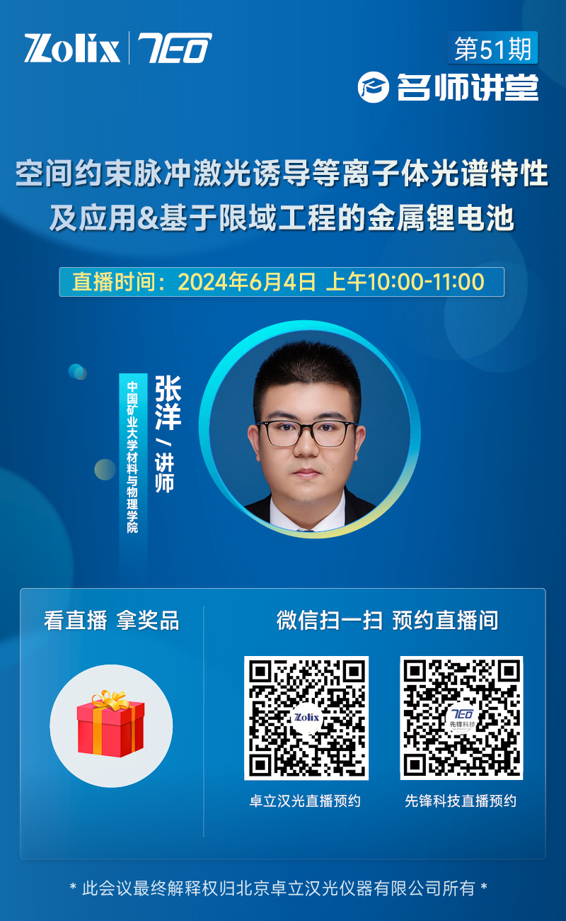 直播预约6月4日上午10:00—11:00,中国矿业大学材料与物理学院院聘副教授—张洋为大家带来讲座《低维半导体材料及器件的偏振光电流研究》。直播期间更有丰富好礼相送,欢迎届时参加!