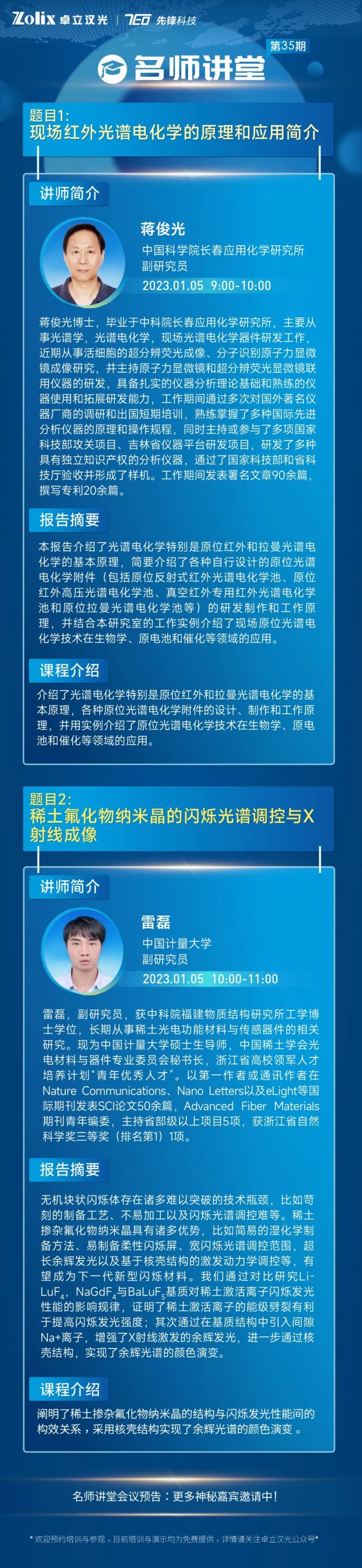 35期名师讲堂 |现场红外光谱电化学的原理和应用简介&稀土氟化物纳米晶的闪烁光谱调控与X射线成像