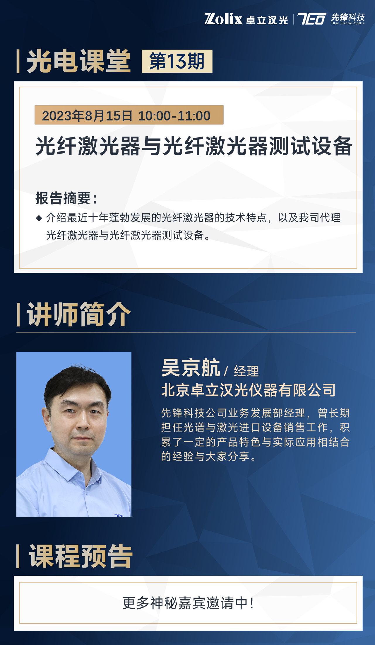 希望通过光电课堂,我们可以共同学习*新光电知识,8月15日上午10点,让我们不见不散!