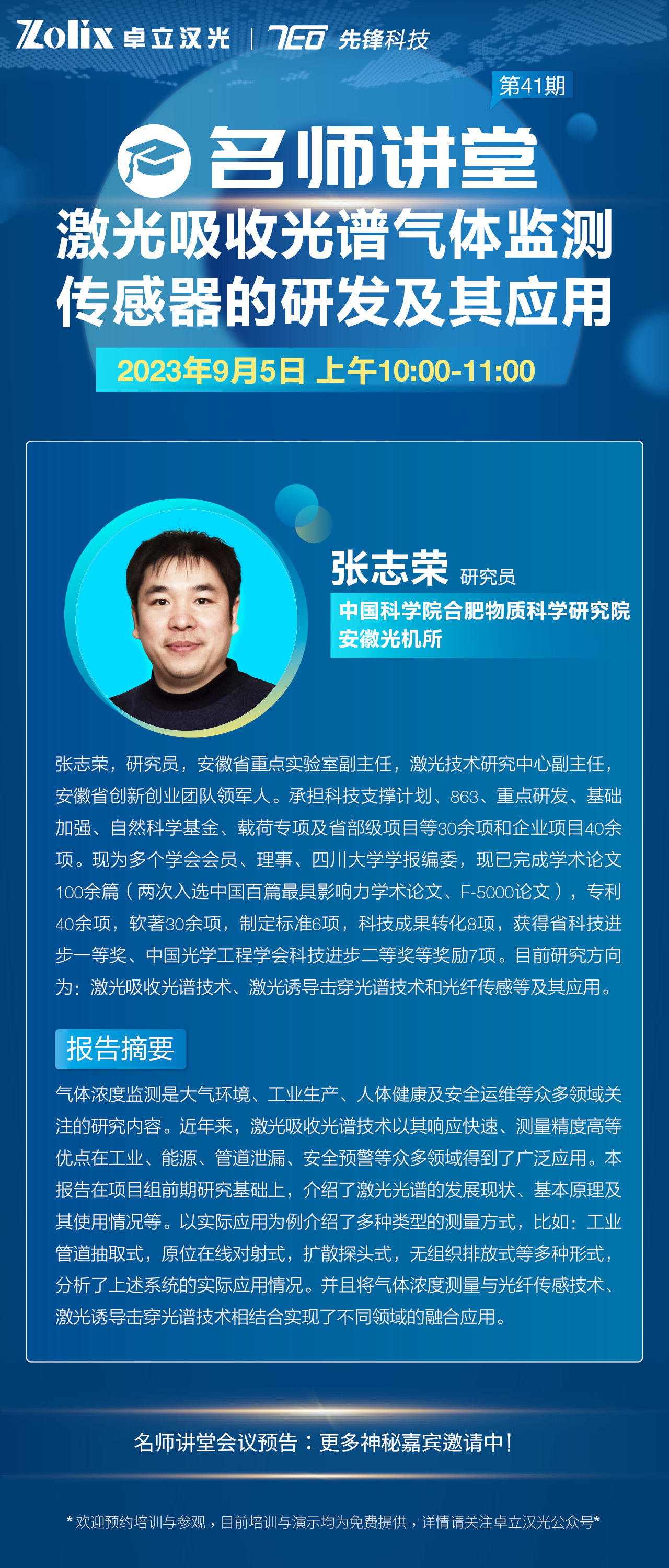 41期名师讲堂|安徽光机所—张志荣研究员带来激光吸收光谱技术方向讲座,更有多重直播福利,欢迎预约!