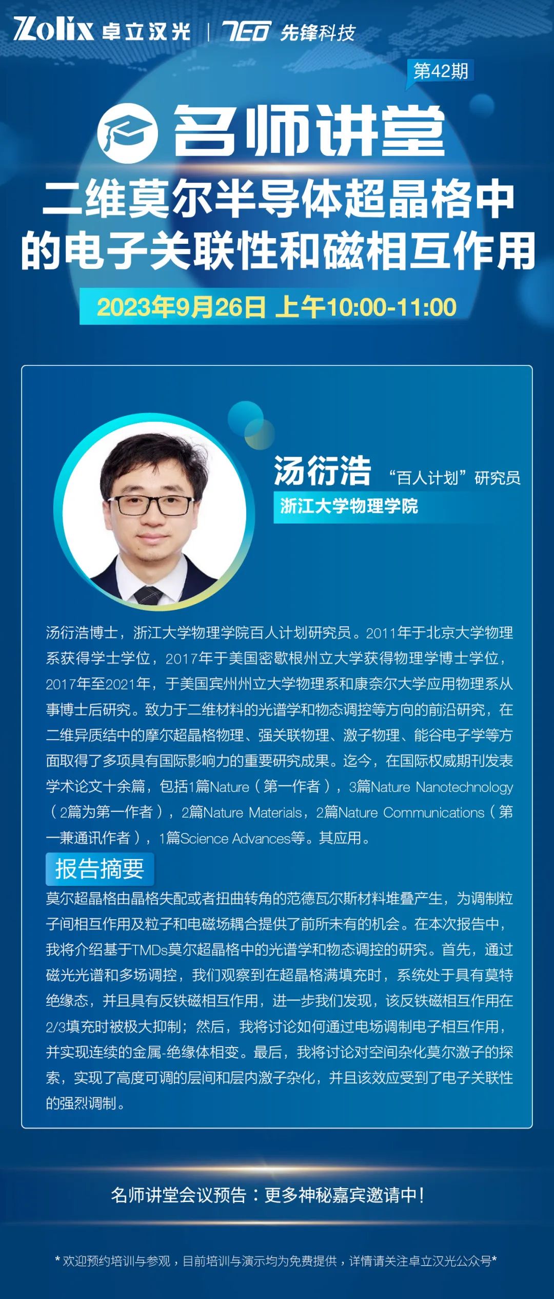 本期快盈lV隆重邀请到了浙江大学物理学院—汤衍浩博士,与大家分享自己科研领域的经验和心得体会,他带来的讲座题目是《二维莫尔半导体超晶格中的电子关联性和磁相互作用》,希望本次讲座能够为您的科学研究带来灵感与助力,推动研究的进展,精彩不容错过,赶快报名开启学习之旅吧~