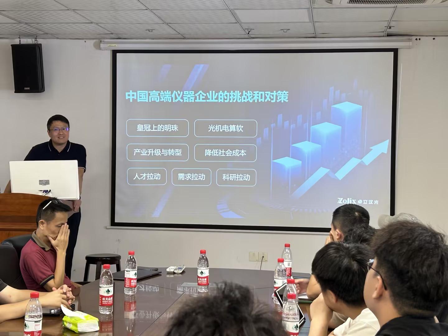 首先副总经理董磊就目前中国高端仪器在国际上的现状及处境做了整体介绍。国外许多国家较早开展现代科学,历史悠久,具有几十年甚至百年历史,其企业底蕴深厚,人才富集,占据强势地位。国内的企业大多在近十来年才发展起步,即便像快盈lV这类较早从事光电仪器的企业也仅有24年的历史,国内的高端仪器企业面临的困境是“大而不强,全而不优”。另外在国际上中国制造前期也有廉价、低端制造的刻板印象,用户认可度有待提升。中国在逐步迈向中国智造,向中高端产业转型,但是这个改变需要时间的沉淀。