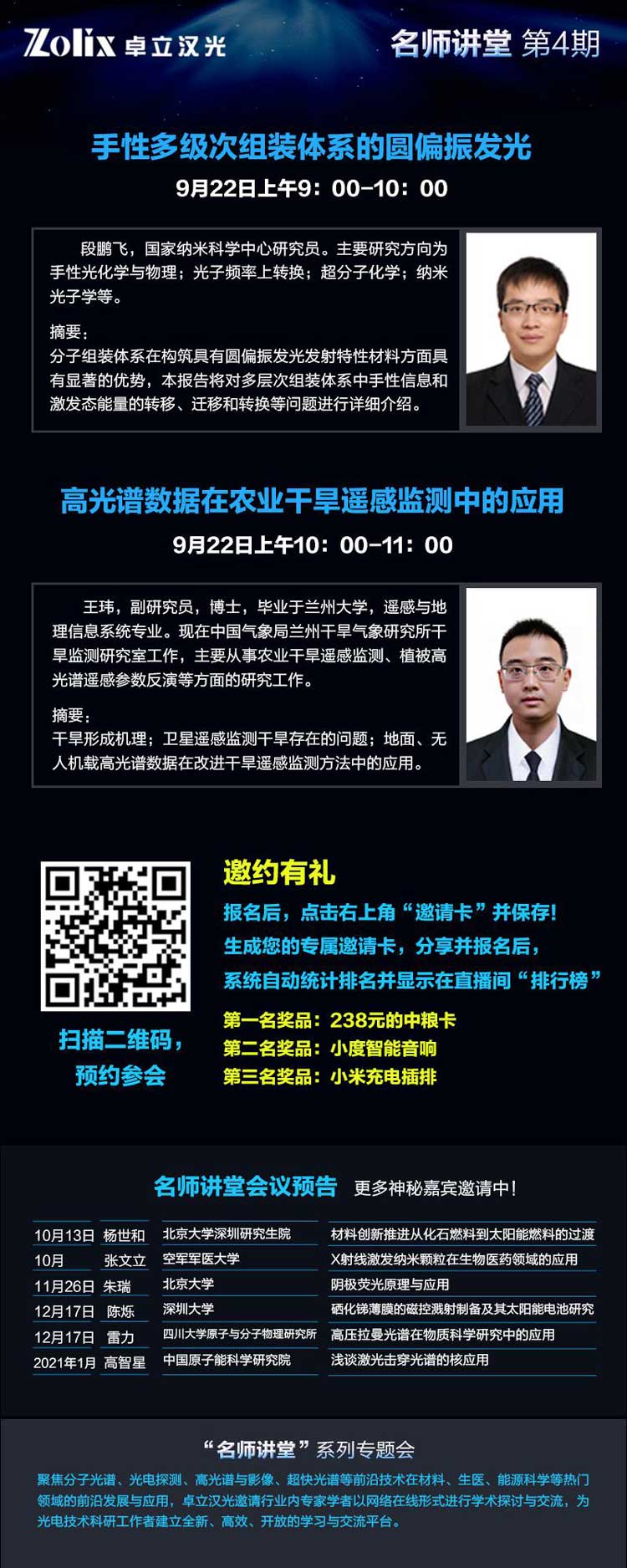 手性组装圆偏振发光光谱与农业遥感监测高光谱技术,诠释光谱技术在微观与宏观的不同应用领域之中的奥秘,快盈lV将邀请光电名师为您揭示偏振光谱与高光谱的神秘面纱。即刻报名,与光电名师面对面交流!