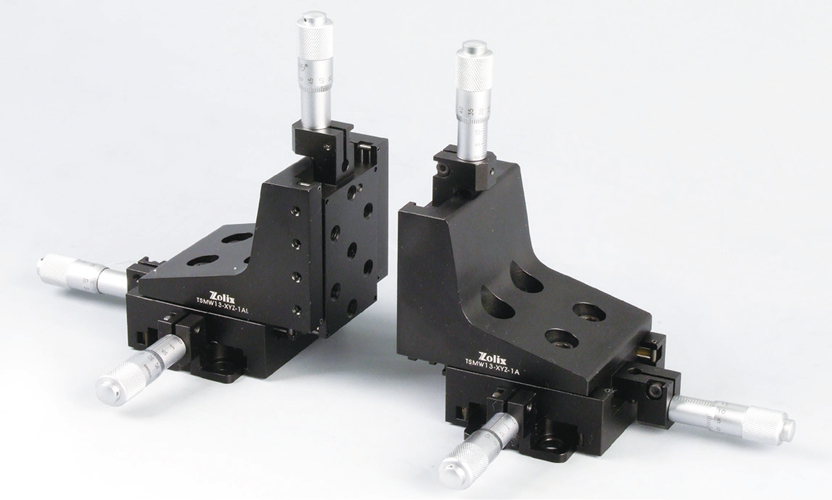 采用精密线性滚珠导轨,分厘卡驱动,运动舒适,精度高,弹簧复位,消除空回。XY 轴驱动分厘卡安装在一个水平面上,并且分为左右手型(左手型在型号中加L),操作十分方便。Z 轴用分厘卡提升负载(相对弹簧提升...