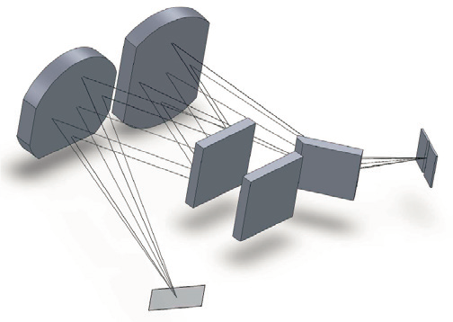 传统的C-T 结构光谱仪通常采用球面镜作为成像元件, 由于入射光并非理想的点光源信号(实际为长方形或正方形光斑,取决于狭缝开口形状)而导致大部分信号光处于离轴状态,离轴信号成像一方面会有彗差,另一方面离轴信号光通过成像光路后,在焦平面上汇聚于空间上不同的位置,且两个方位互相垂直形成一个短交线,这种现象称为像散,彗差和像散将会导致成像模糊而使得光谱仪的光学性能受到较大的影响。