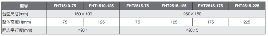 FHT(Fixed Height Table)系列产品是快盈lV新推出的小型固定高度平台,该系列产品主体材料采用优质铝合金,由上下两块平板及不同高度的4/6根接杆连接而成,稳定可靠,承载力高,可安装各类光机元件。