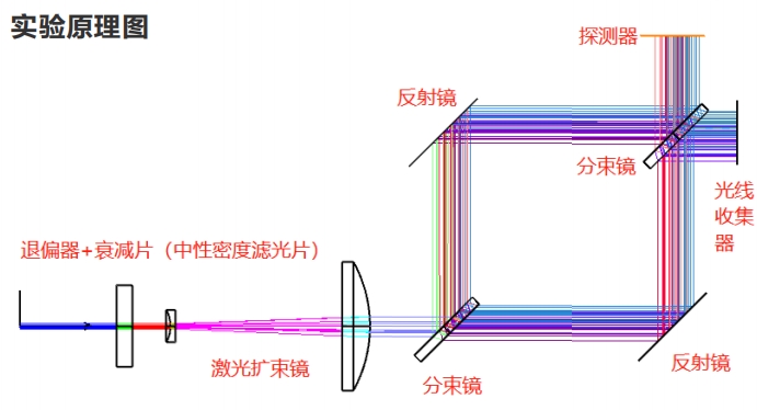 马赫泽德干涉仪相比迈克尔逊干涉仪增加了一个分束立 方体,激光器发出的相干光经分束立方体分为光强比1:1 的两束光分别经反射镜反射后,经第二个分束立方体汇合相 干形成干涉条纹。马赫泽德干涉仪的优点是不带端面反射镜,克服了迈克尔逊干涉仪回波干扰的缺点,因而在光纤传感技术领域得到了更为广泛的应用。