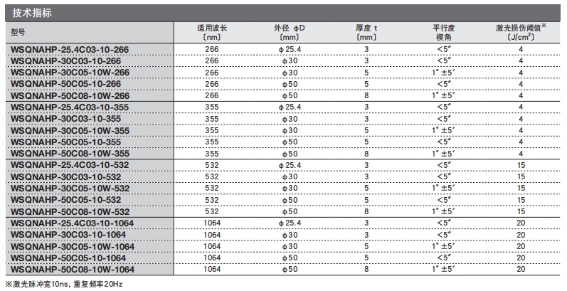 将高能量激光缩小变细后使用时,有可能会产生损坏。使用前请务必确认激光光束没有超过激光损伤阈值。
