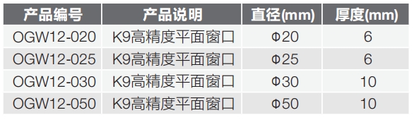 BK7(K9) | 透射范围:380~2100nm 折射率:1.5164@588nm |
