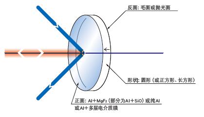 在高精度抛光的平面基板上蒸镀铝膜的反射镜。在所有入射角度都具有高反射率。