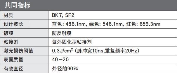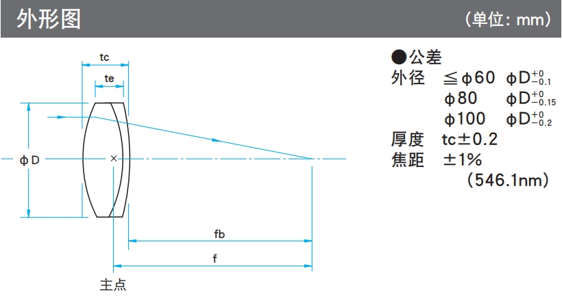 由折射率和色散不同的2个透镜组成的胶合透镜,与球面单透镜相比,可以校正色差和球差。 可以作为望远镜的物镜或激光实验的准直透镜使用。
