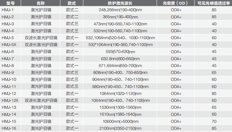 激光护目镜的一个重要指标是防护波长的光密度(OD) 值:OD=式中,T 为透过率。通常OD 值较高时,可见光透过率会受影响,所以应选择合适的激光护目镜,并尽量避免长时间佩戴激光护目镜,缓解视疲劳,保护眼睛健康。