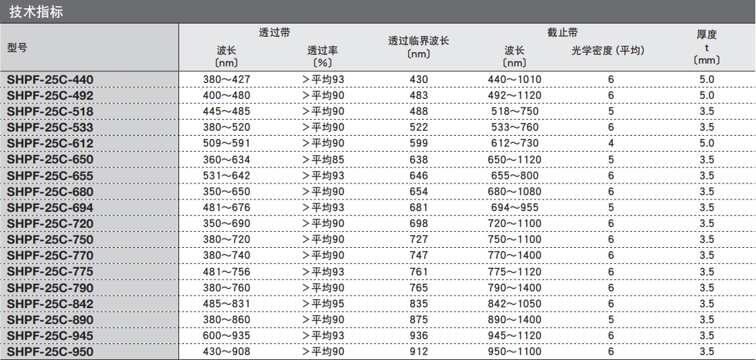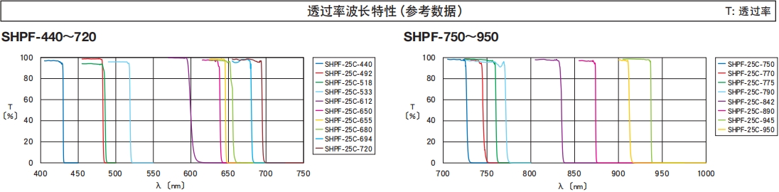 透过短波长一侧的光线,遮断长波长一侧的光线的波长(颜色)分离用滤光片。可以用于生物影像或流式细胞仪。