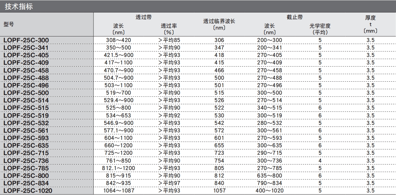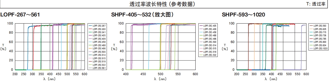 透过长波长一侧的光线,遮断短波长一侧的光线的波长(颜色)分离用滤光片。可以用于生物影像或流式细胞仪。