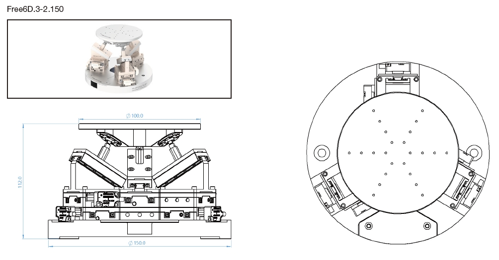 压电六轴并联系统Free6D.3-2.150系列尺寸图